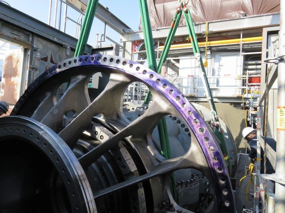 The project was led by APM Superintendent, Ed Menees. The crew made the lift of the assembled casings minus the rotor and everything went extremely well with no issues. The crew was innovative and really thought outside the box with this lift. They were able to assemble and align lower cases outside of the turbine compartment. This alignment was done in parallel to the old shell removal. When shells were set in the turbine compartment, the alignment was already complete and saved 48 hours of the critical path time.